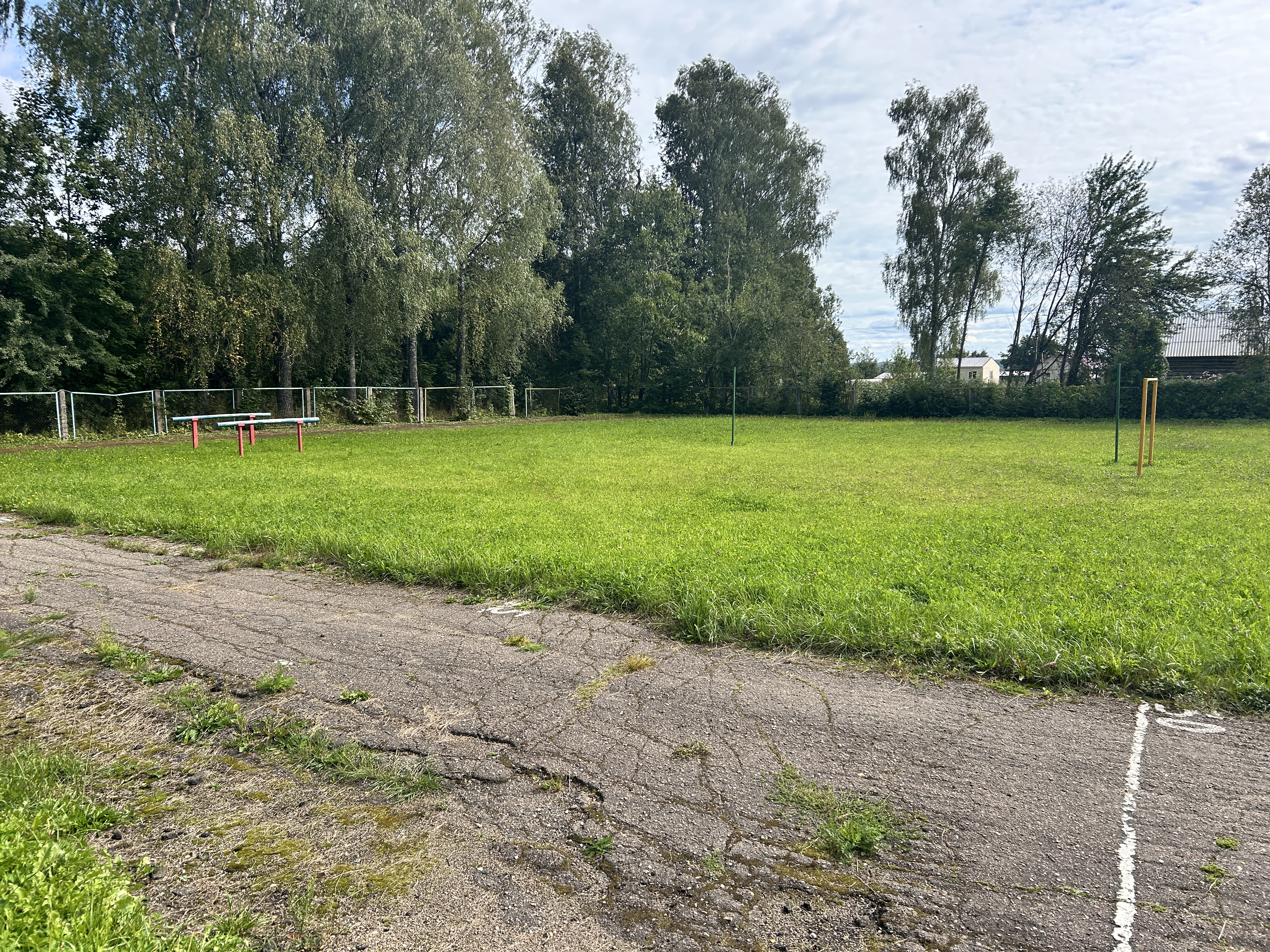 Спортивная площадка находится на заднем дворе школы на ограждённой территории. Осенью и весной данный спортивный объект используется для проведения соревнований по бегу, уроков физической культуры на открытом воздухе (в соответствии с погодными условиями), строевой подготовки. В зимнее время стадион используется в качестве площадки для проведения занятий по лыжной подготовке обучающихся,в том числе детей-инвалидов и лиц с ОВЗ.